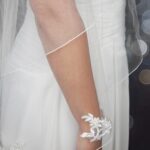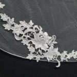 A delicate lace veil, applique lace is placed along the very edge of the veil giving it that perfect finish, this applique has a more leafy detail.