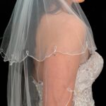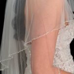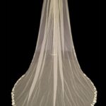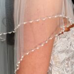 Delicate Pearl and bead edged veil Available in 41″ 1 Tier only 100″ 1 Tier only 116″ 1 Tier Only Linzi jay code was LA970