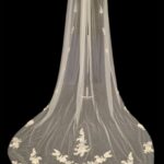Stunning veil with applique lace symmetrically placed.