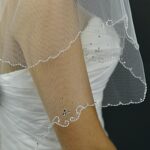 Delicate pencil scallop edged veil. decorated with clear Crystals and droplet clear Crystal beads at the highest point of each scallop.