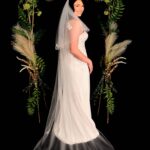 A stunning raw cut edged veil. 3D motif trims the edge of a beautiful train, this veil comes in long and short, however the short version has been slighted adapted.