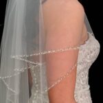 A stunning scallop edged veil with Diamante and Clear Crystal droplets.
