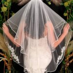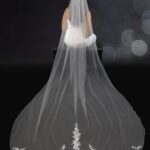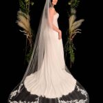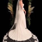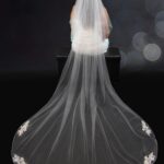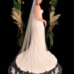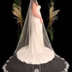 A stunning design with applique lace placed around the edge of the veil.