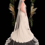 A classic lace detailed veil, the lace is delicately placed around the edge of the veil, a versatile veil that will go with almost any dress.
