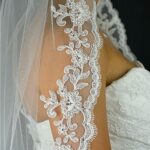 Simply elegant lace veil, with a larger flower motif at the bottom of the veil it has the wow factor to go with any dress, the lace then continues in a delicate trim around the edge of the veil. Single Tier only Available in 100″ 116″