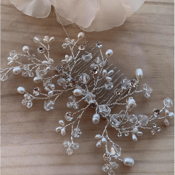 Freshwater Pearls, Crystals & Diamante Hair Comb.