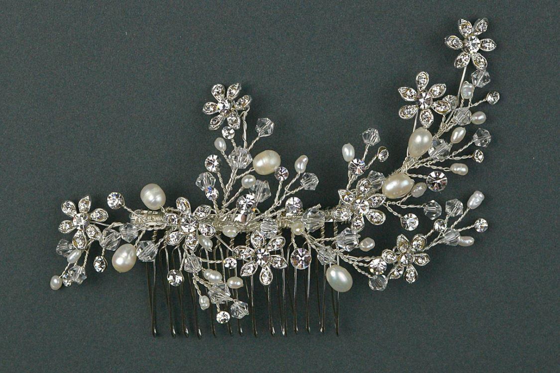 Freshwater Pearls, Diamante & Crystal Hair Comb.