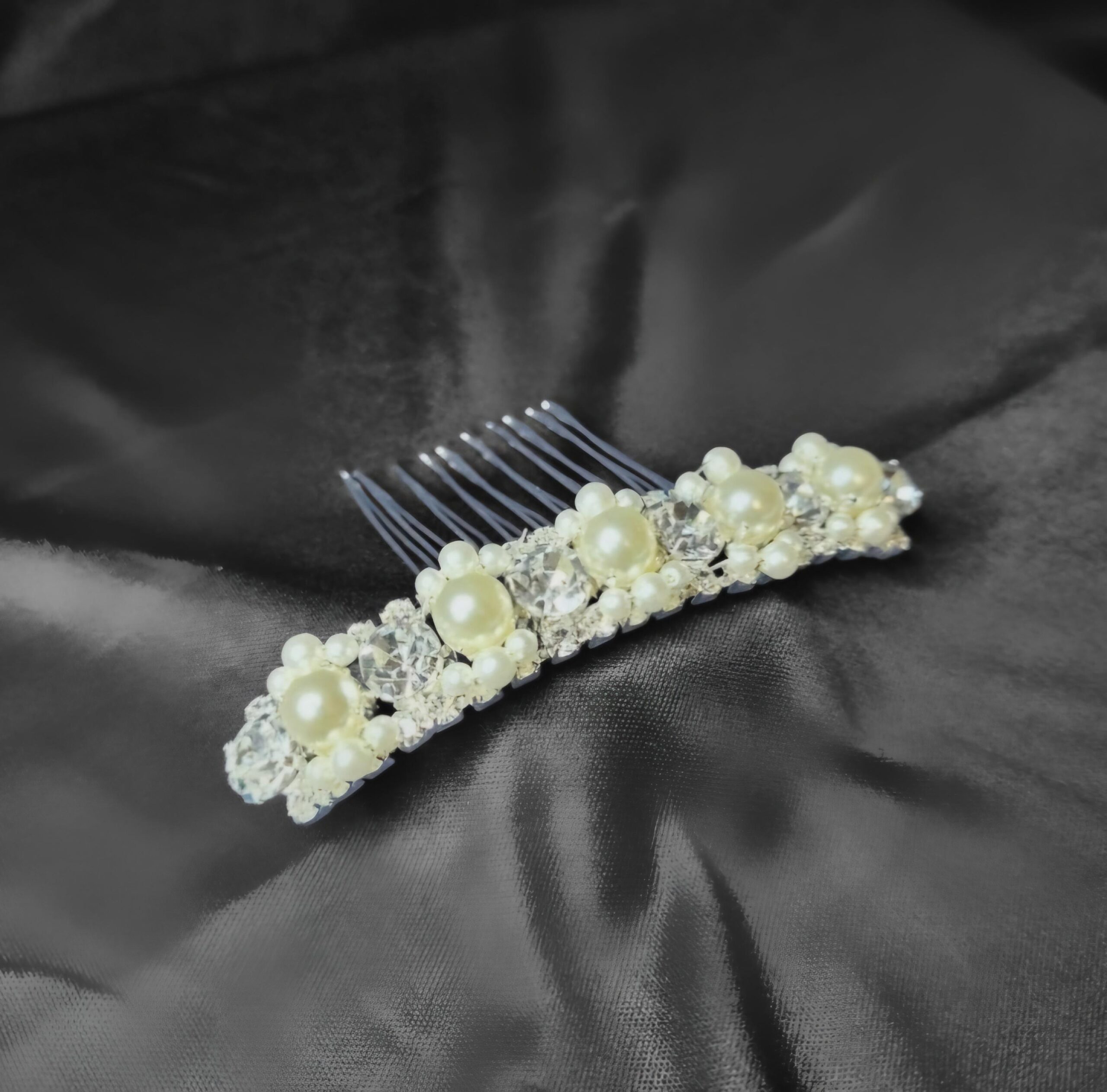 Delicate comb, made up of Diamantes and pearls giving of the look of flowers with petals.