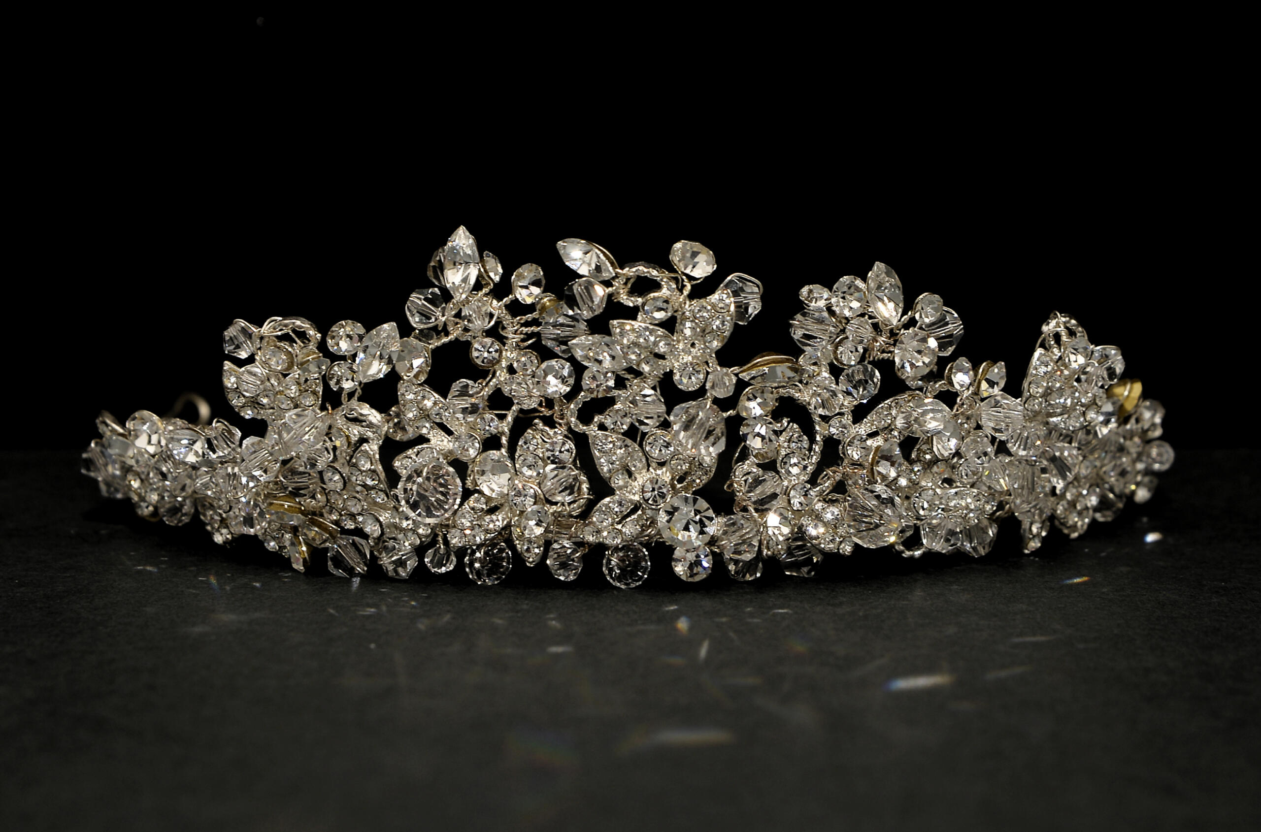 A High Crystal Diamante Tiara With Swarovski Stones.