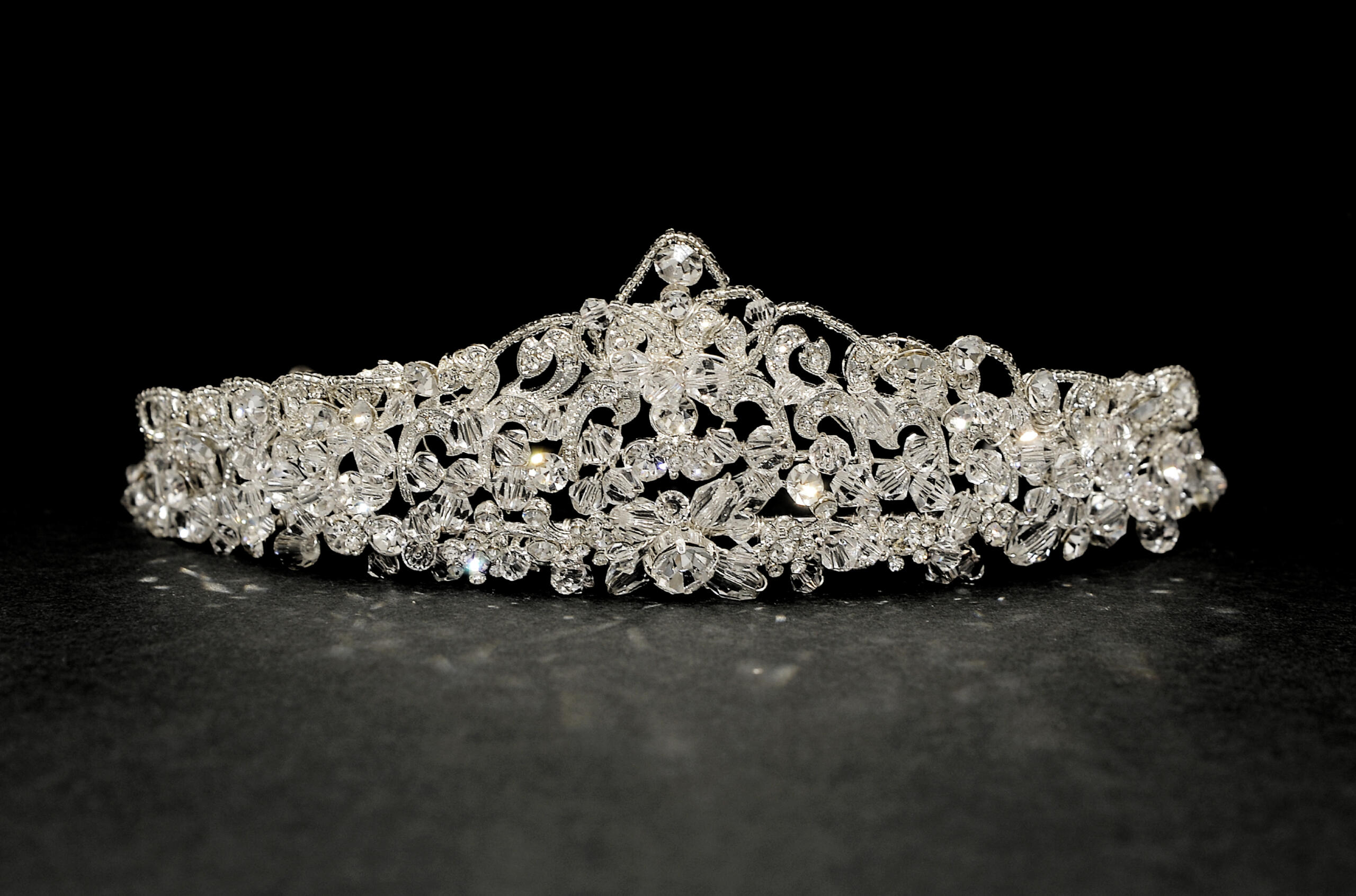 A radiant traditional tiara. Authentic princess notes with dazzles of diamantes and clear beads.