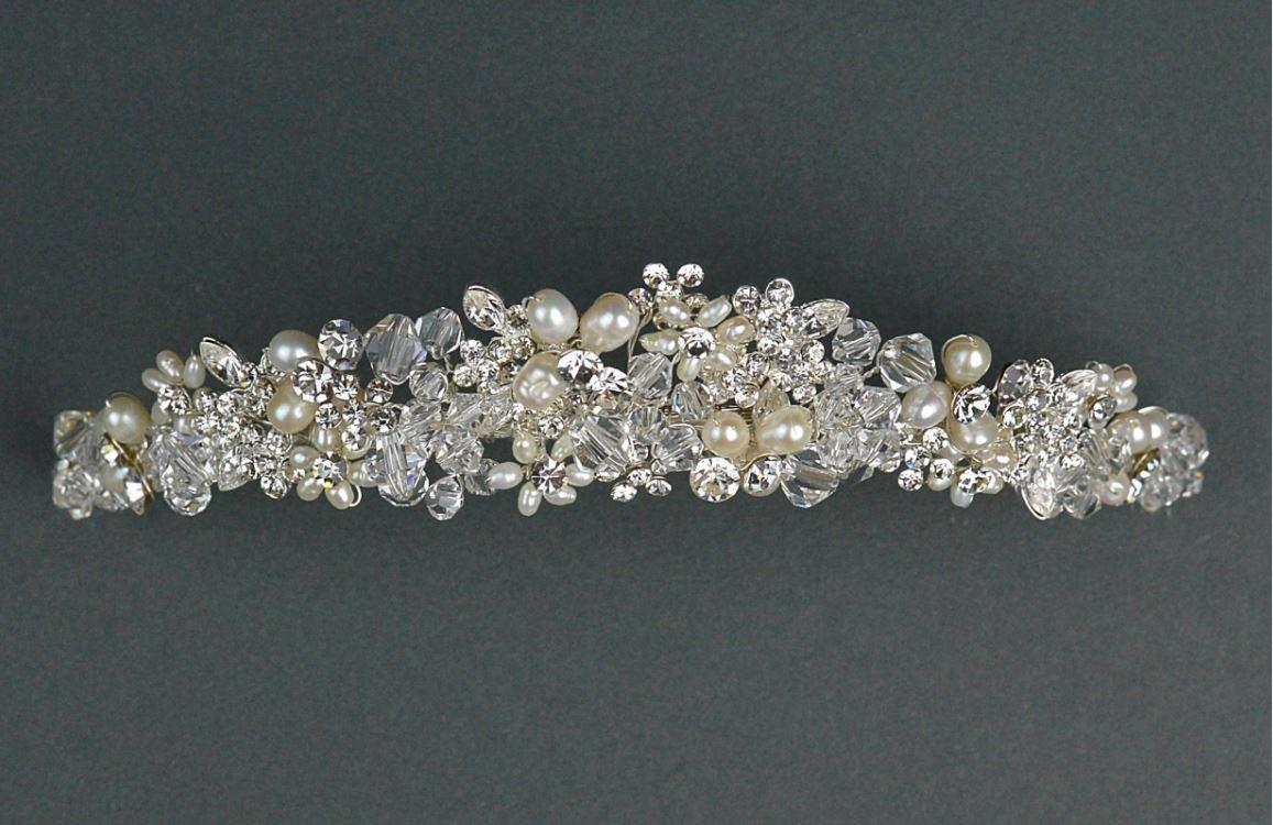 A full band tiara of freshwater Pearls, Crystal & Diamante.