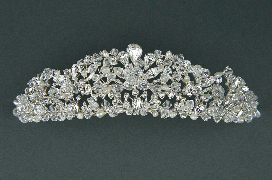 A traditional set tiara with a stunning combination of clear crystal bead, diamantes and pearls. Set to dazzle this tiara is show stopping.