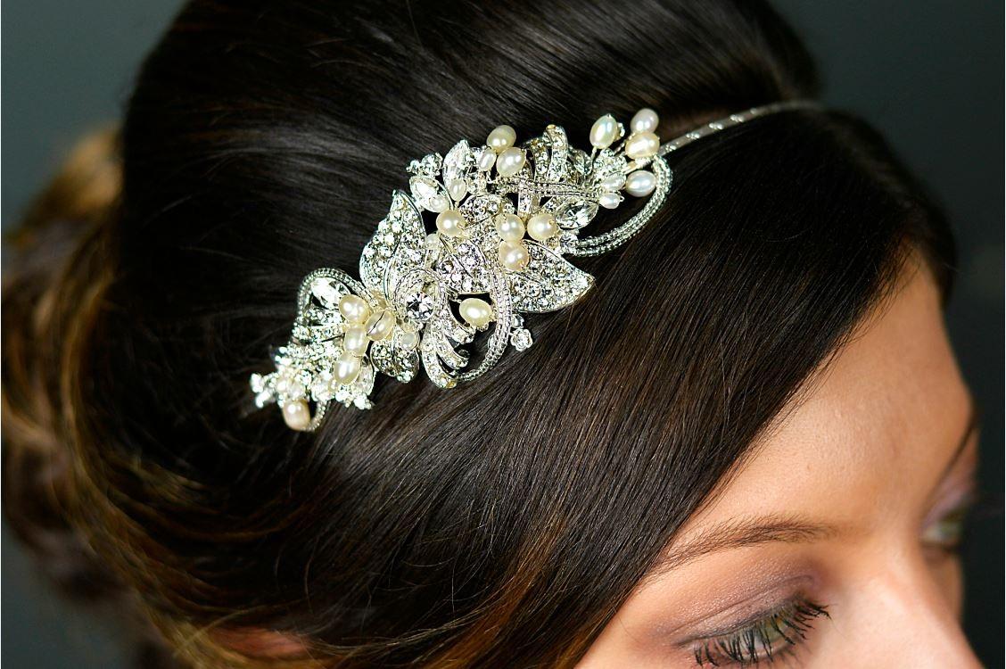 One of our popular side tiaras, elegant leaf like structures with sparkly curves and encrusted with pearls.