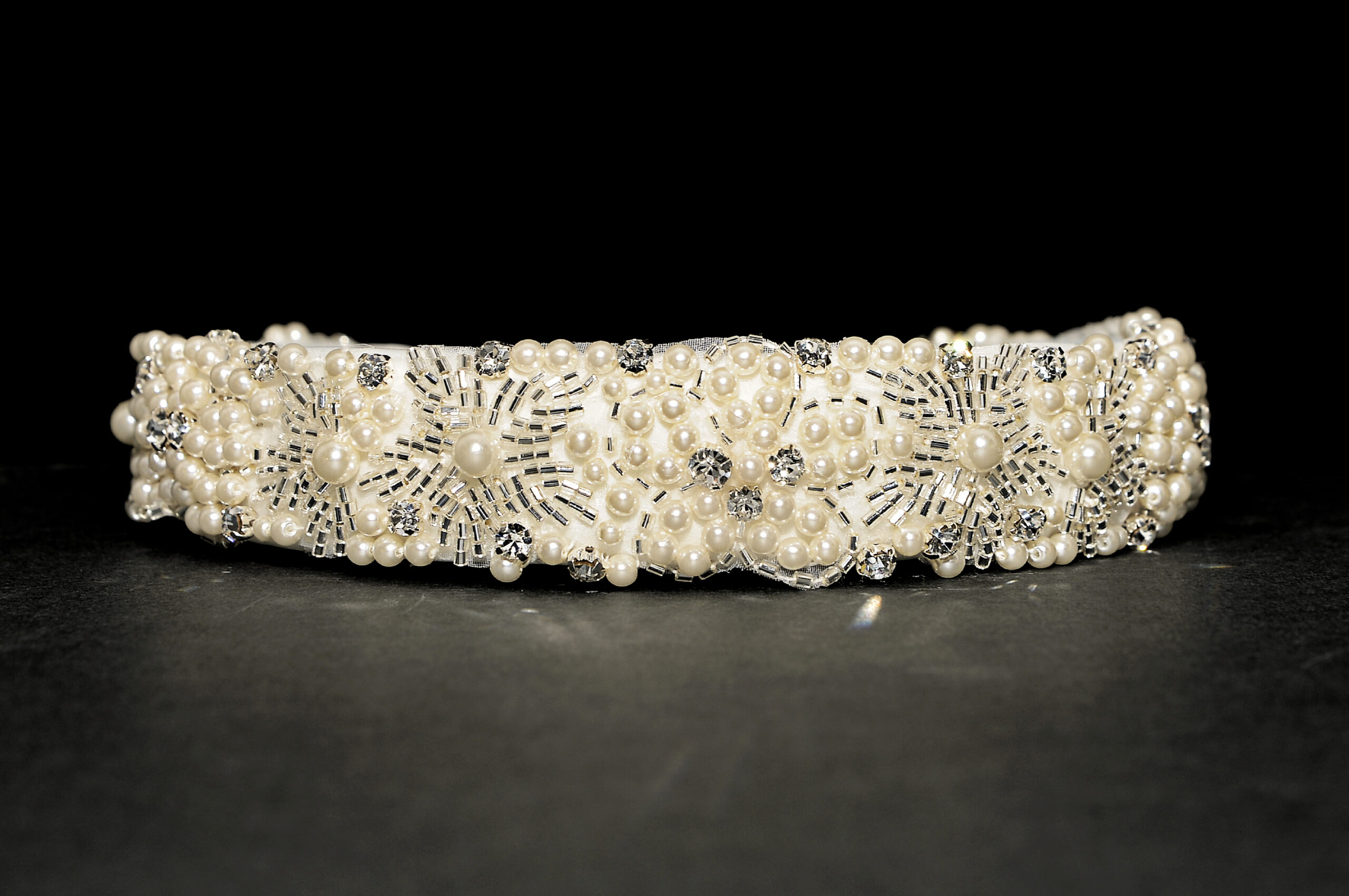 This pearl headband is a real mixture of everything bridal… pearls,beads and diamantes. Floral accents and stunning quality.