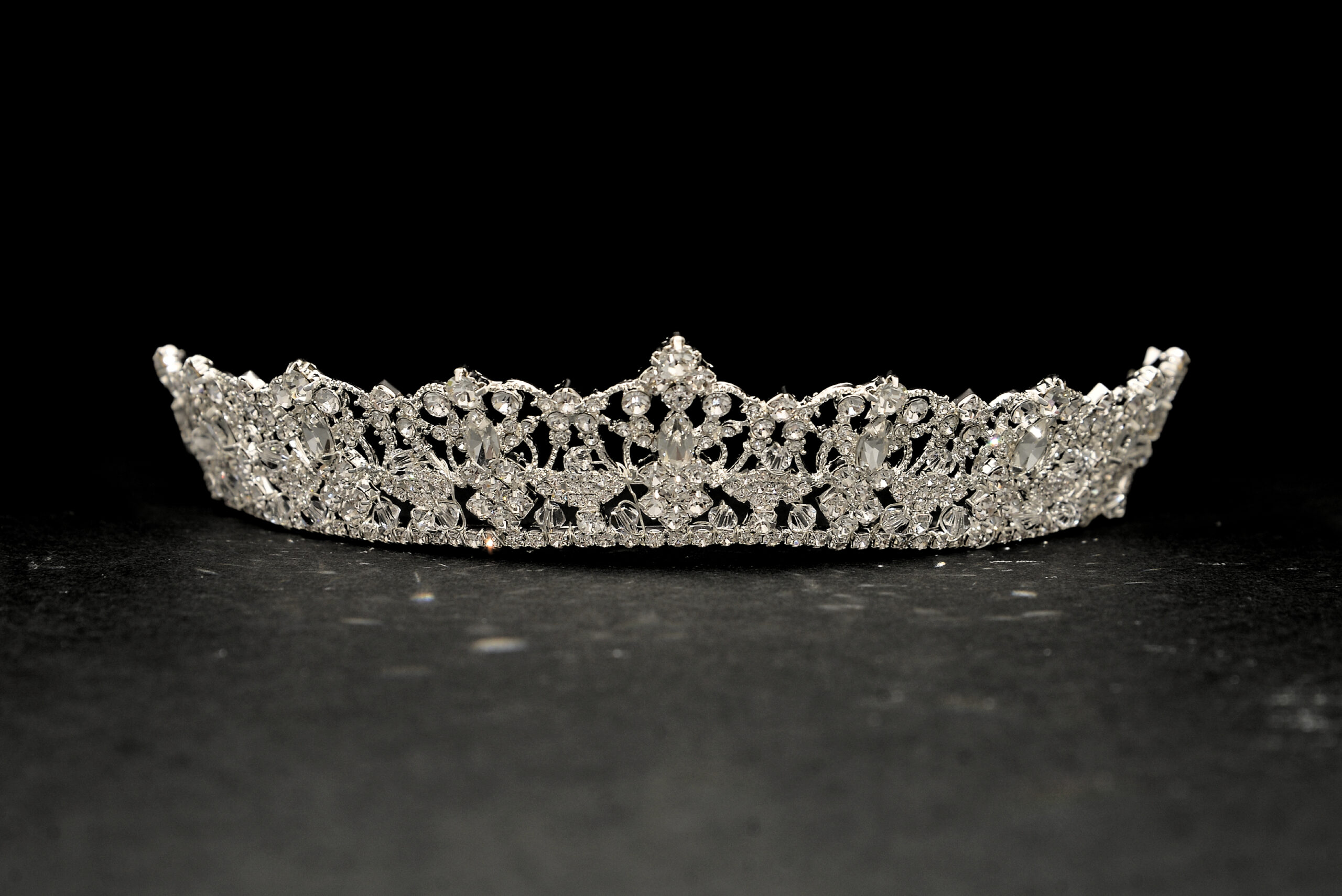Stunning solid style princess Tiara, detailed with Diamantes and Crystal beads, measures 1.5″ at the highest point