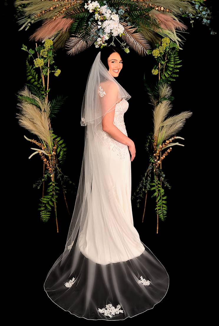 Veil available in 4 sizes: 54″, 72″, 108″ and 126″. Available in Ivory only. Available in 1 tier and 2 tier.