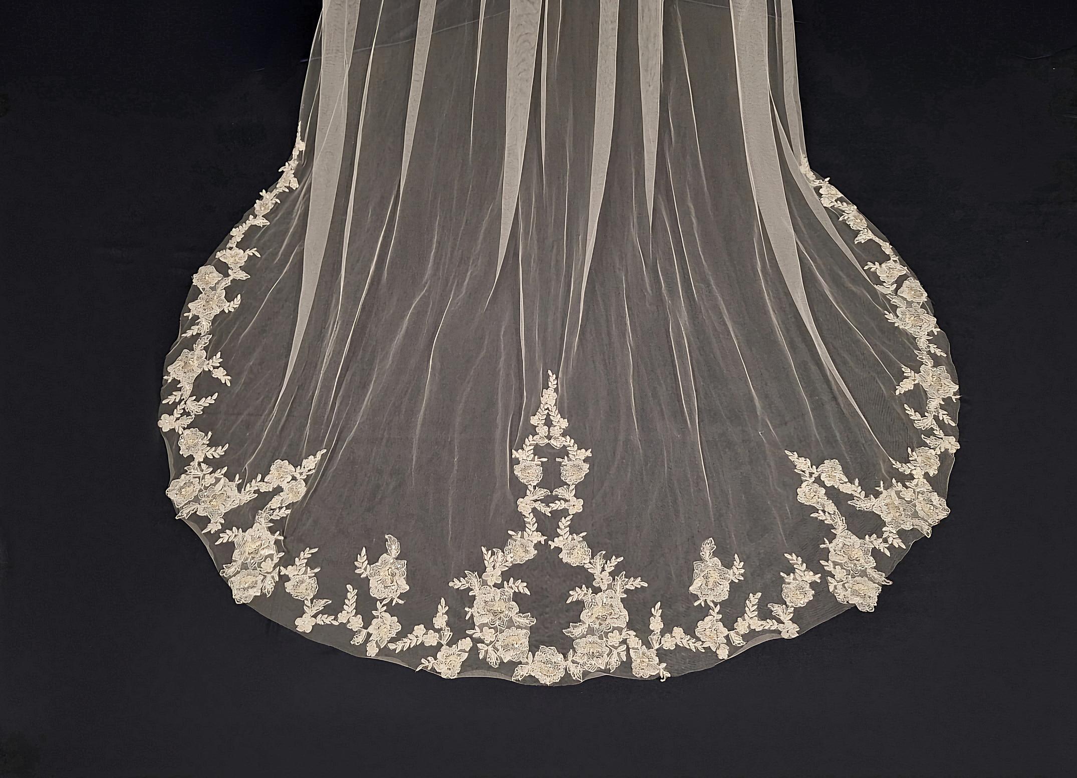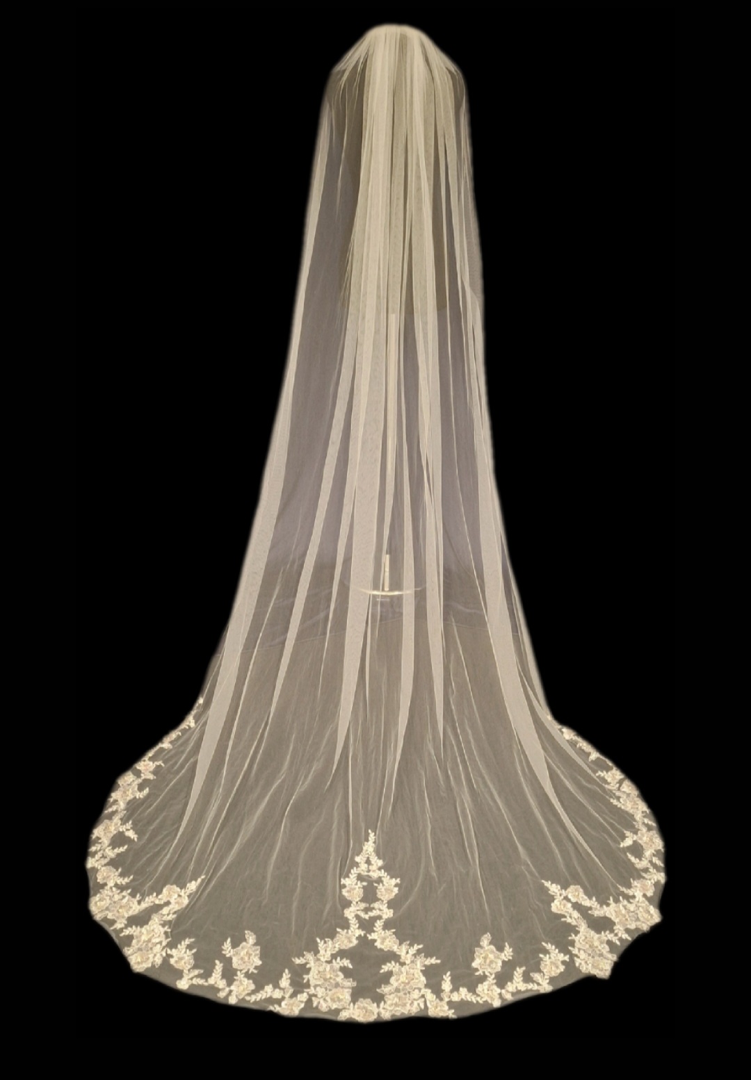 Veil available in 126″ Available in Ivory, White, Blush and Champagne. Available in 1 tier only. Our single tier veil measurements are approximately :