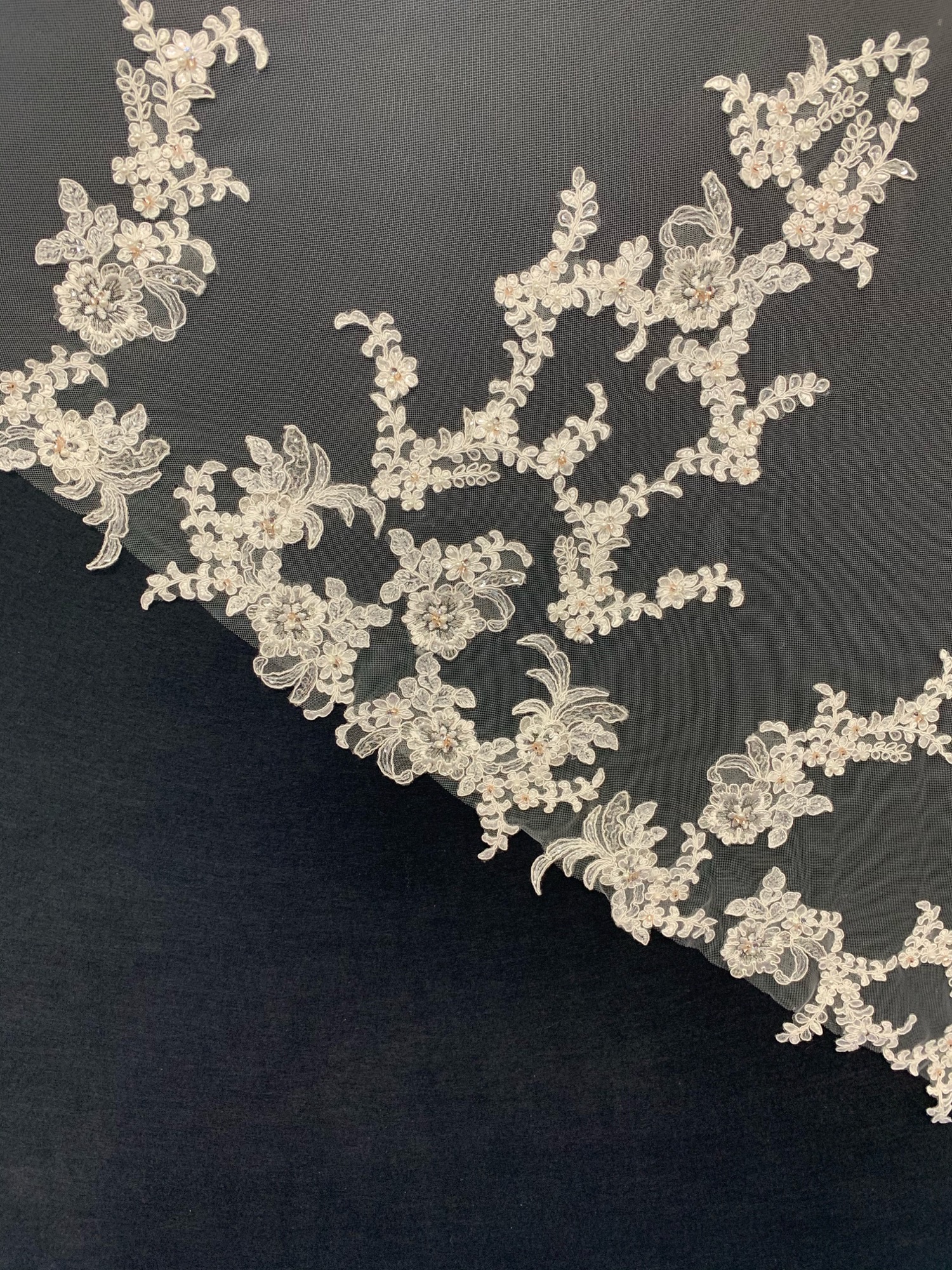 Veil available in 126″ only. Exact measurement is 108″ Available in Ivory only. Available in 1 tier only. CHAPEL – 126” = 100” 1T