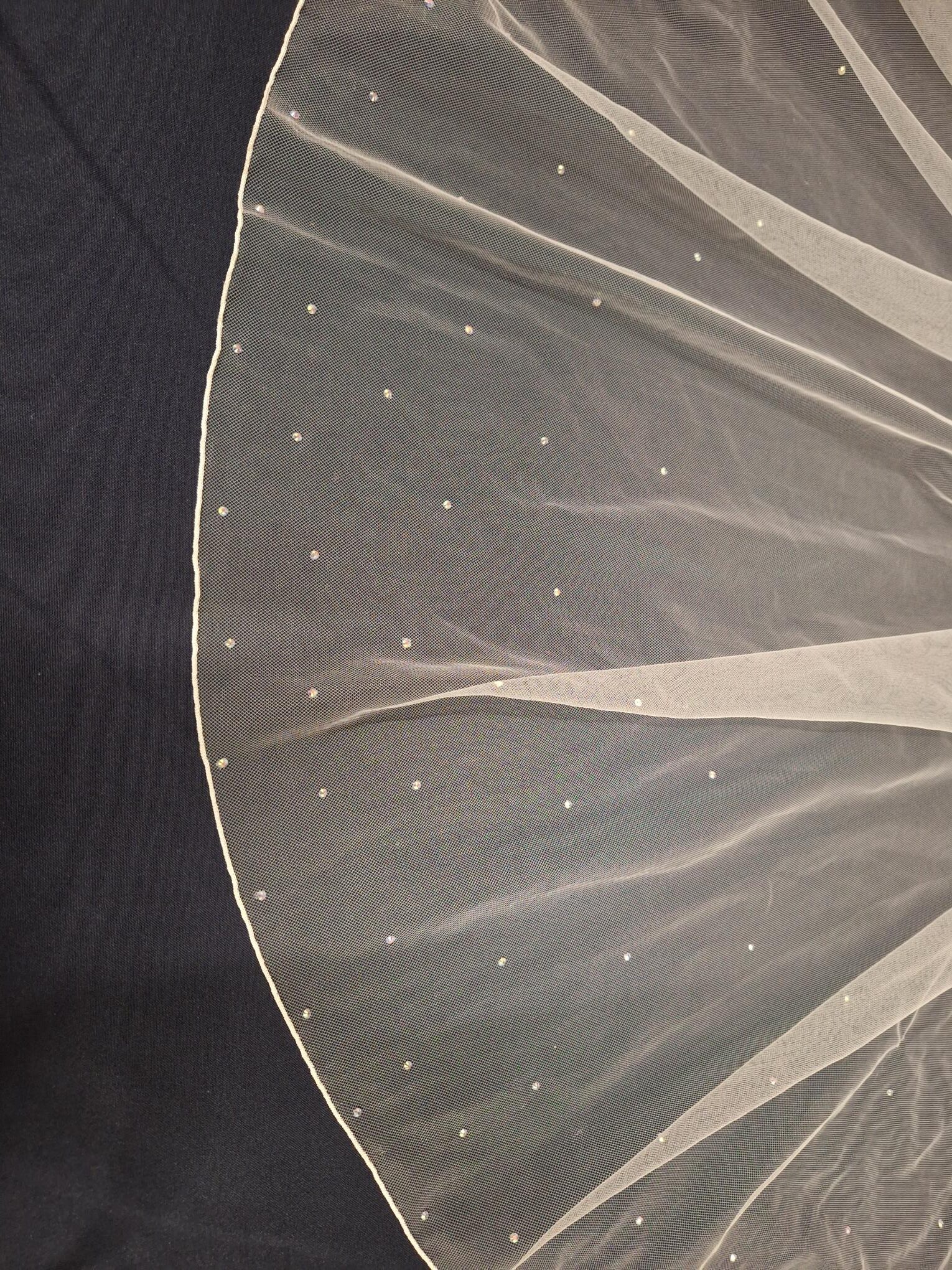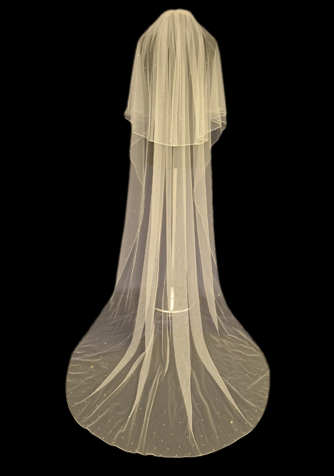 Beautiful veil with a soft scatter at the bottom of the veil approximately a foot from the end in either AB or Crystal, 2 Tier only.