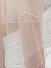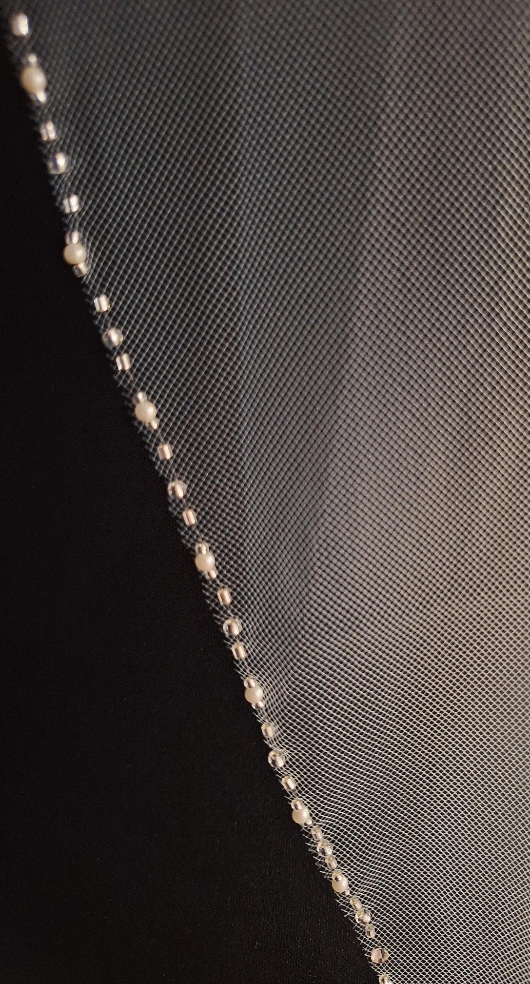 A beautiful fingertip bridal veil by Linzi Jay with a fine ivory pearl and beaded edge.